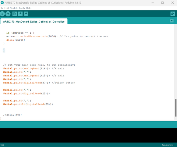 Projects assigned to push my design skills into unexplored territories: using Java Script and Arduino, sewing, fabricating, las and physical components including: wiring, servo motors, actuation arms, LED's, analogue sticks, and buttons as well as practice using laser cutting technology.